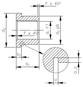 | Nach dem Einpressen in eine Gehäusebohrung H7 aus Stahl wird der Innendurchmesser d1 F7 zu d1 H8. | Wellenhärte: min. HB 165 Wellentoleranz: Über die Toleranz der Welle wird das Lagerspiel bestimmt. Dieses hängt von mehreren Faktoren ab, wie Belastung, Gleitgeschwindigkeit, Schmierung, Temperatur. Für mit Öl geschmierte und normal beanspruchte Lager empfehlen wir eine Wellentoleranz [dW] von e7. |