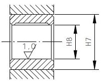Nach dem Einpressen in eine Gehäusebohrung H7 aus Stahl wird der Innendurchmesser d1 F7 zu d1 H8.